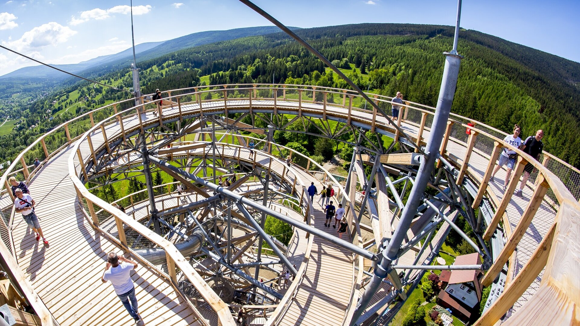 Zbiórka uczestników i wyjazd zgodnie z rozkładem. Wyjazd do Świeradowa-Zdroju. Spacer po uzdrowisku. Dla chętnych wejście na Ścieżkę w Chmurach Sky Walk (płatne we własnym zakresie ok. 69 zł). Wyjątkowy projekt, wznoszący się nad miastem, zaprowadzi Państwa na wysokości 62 m, skąd podziwiać będziecie zapierającą dech w piersiach panoramę uzdrowiska i Gór Izerskich. Drewniana konstrukcja o długości 850 metrów doprowadzi Państwa na sam szczyt, gdzie oprócz cudownych widoków będziecie mogli odpocząć na siatce w kształcie kropli lub – dla bardziej odważnych – wejść na szklaną platformę. Jeżeli wciąż będziesz narzekać na brak adrenaliny to wycieczkę możesz zakończyć jazdą 105 metrową zjeżdżalnią. Przejazd do ośrodka, zakwaterowanie. Obiadokolacja. Nocleg. Trasa ok. 550 km.